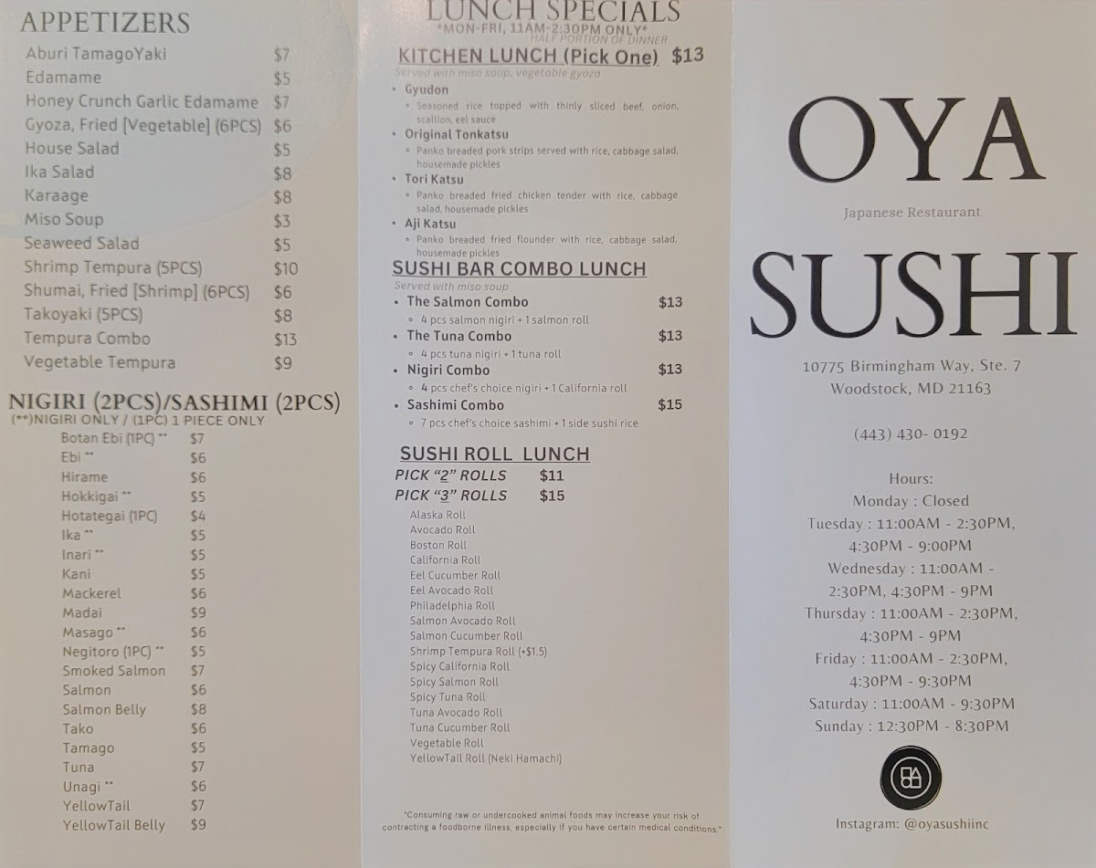 If you're in the mood for fresh and flavorful sushi, you’re in for a treat with the Oya Sushi Menu. Nestled in Marriottsville, MD, Oya Sushi offers a variety of dishes that cater to every taste. From mouthwatering sashimi to expertly crafted rolls, each dish is a perfect balance of flavor and texture. Whether you’re craving something traditional like a spicy tuna roll or looking to try something new, Oya has got you covered.